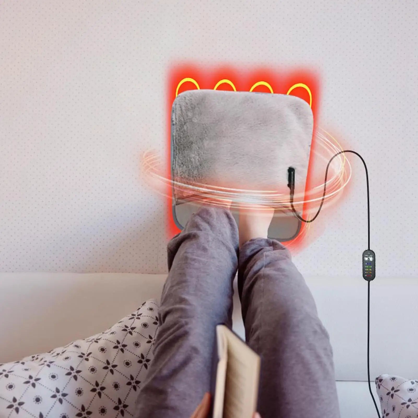 1.Efficient Heating Performance: This electric foot warmer provides efficient heating with heat generating in just 3 seconds, promoting full-body warmth that starts at the feet, suitable for prolonged sitting trainings to maintain consistent comfort levels 2.Winter Cold Defense: The foot warmer combines plush fleece fabric with excellent heat retention properties, delivering a warm solution for defending against winter cold while adding an indulgent layer of softness for use on couches or beds 3.Adjustable Warmth Zones: Designed with targeted zone heating technology, this USB foot warmer focuses warmth precisely on your feet, providing consistent comfort whether you are typing away at your computer or delightful downtime at home, providing a pleasant experience even in cooler climates 4.Adjustable Heat Settings: This heated foot warmer includes five precise settings for adaptable warmth modes, providing consistent comfort whether you're lounging on the couch, working at a desk, or delightful outdoor seating areas 5.Winter Comfort Sharing: The foot heating pad not only delivers gentle heat for suitable comfort but also acts as a meaningful way to express care during winter months, making it a top selection for birthdays, holiday presents, and family gatherings filled with love and warmth
